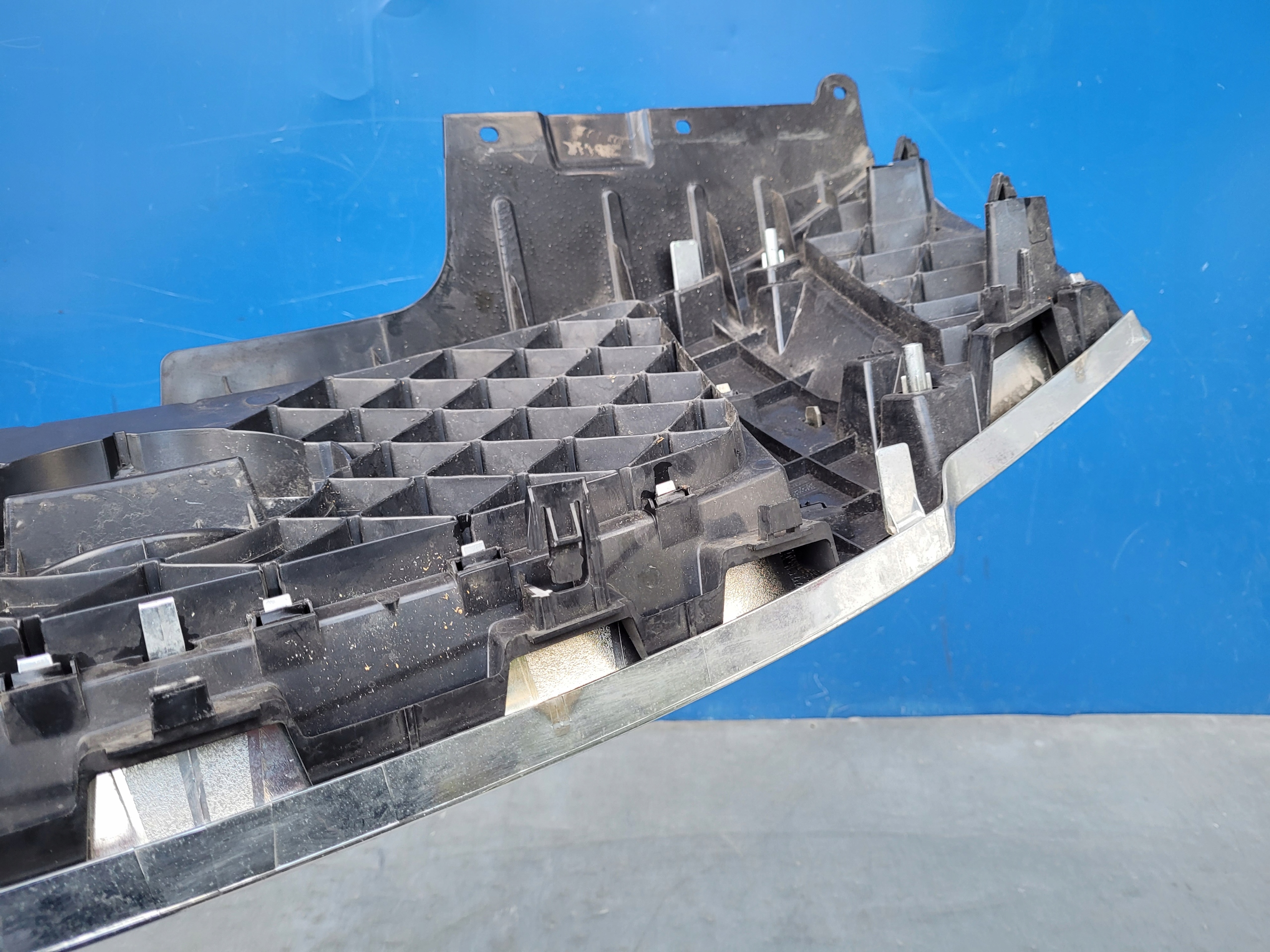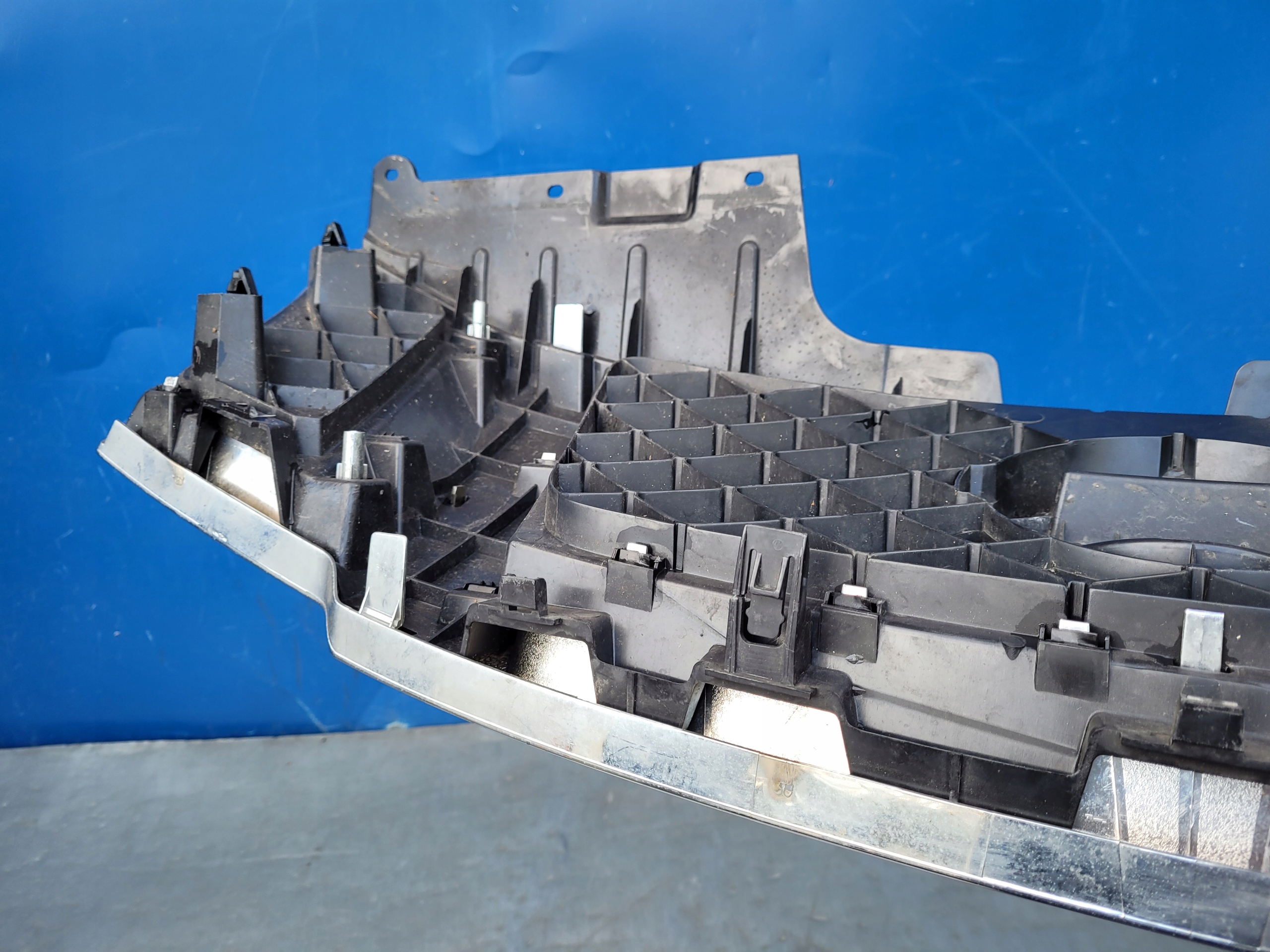 ATRAPA MA URWANE DWA DOLNE UCHWYTY I JEDEN WYSZCZERBIONY. CHROM PĘKNIĘTY W DOLNEJ CZĘŚCI. USZKODZENIA ZAZNACZONE NA ZDJĘCIACH. BRAK ZNACZKA.