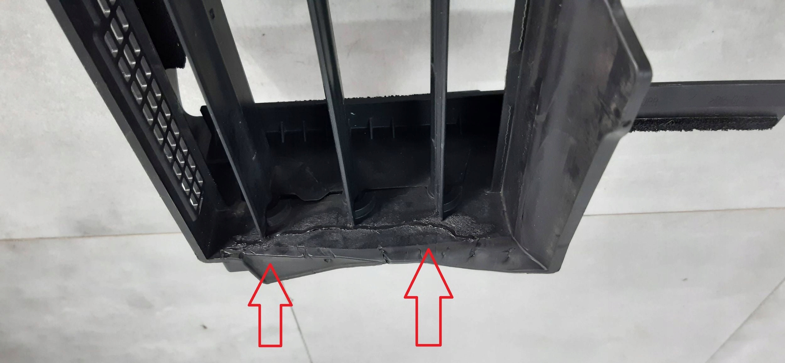 ŚLADY KLEJENIA W MIEJSACH ZAZNACZONYCH NA ZDJĘCIU.