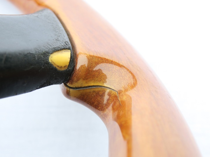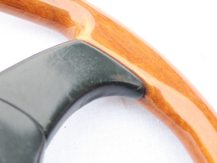 ORYGINALNA KIEROWNICA SPORTOWA DREWNIANA TRÓJRAMIENNA ATIWE, W KOMPLECIE NAKŁADKA SKÓRZANA Z KLAKSONEM I LOGO ABARTH, KIEROWNICA BEZ NABY. PO ZASTOSOWANIU ODPOWIEDNIEJ NABY PASUJE DO AUTA AUDI 80 90 B3 B4 S2 COUPE CABRIO 100 C3 C4 V8, BMW E21 E24 E28 E30 E32 E32 E34 E36, MERCEDES W201 W124 W116 W123 W126 W129, PORSCHE 911 924 944, OPEL KADETT CORSA ASTRA CALIBRA, VW POLO GOLF CADDY PASSAT TRANSPORTER T2 T3 T4 I INNE AUTA, STAN BDB-(DROBNE PEKNIECIA LAKIERU PRZY RAMIONACH GÓRNYCH, WADY RACZEJ MAŁO WIDOCZNE PO ZAŁOZENIU, NA LEWYM GÓRNYM RAMIENIU PRZETARCIE SKÓRY), CENA OSTATECZNA.