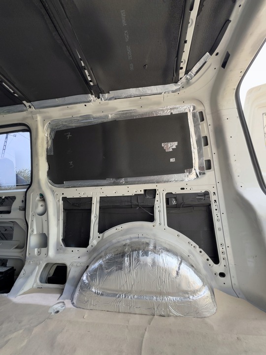 - Podłoga z przegrodą silnika: 3,5 m2 maty butylowej i 3,5 m2 sztuk pianki kauczukowej