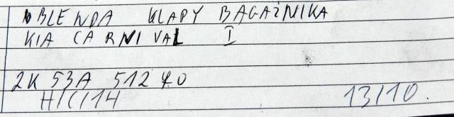 Планка накладка крышки зад kia carnival 2k53a51270