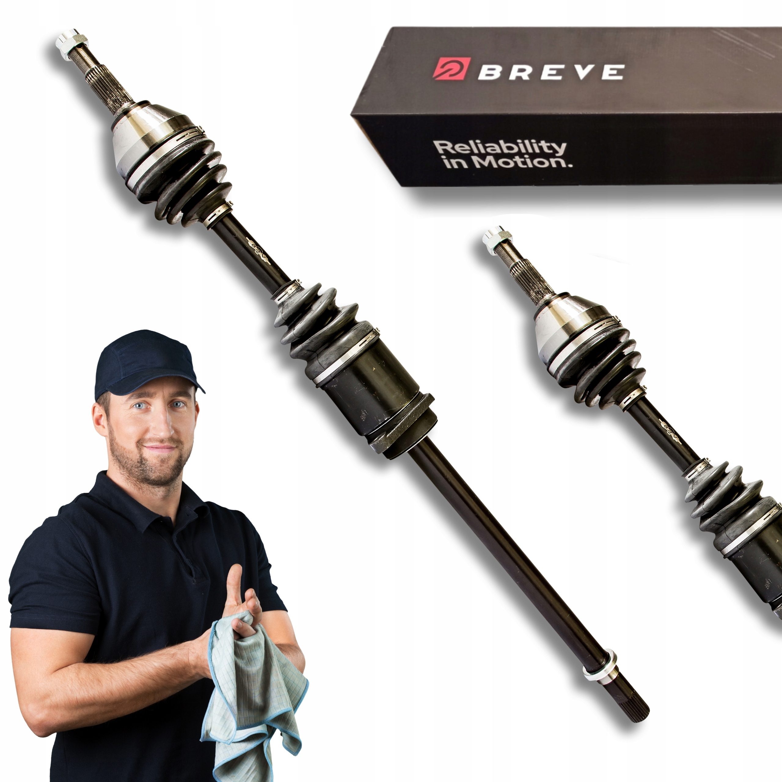Każdy zestaw naprawczy BRV zawiera wszystkie niezbędne elementy, w tym zmontowaną półoś napędową, wałek, zewnętrzny i wewnętrzny przegub homo-kinetyczny, smar, osłony neoprenowe, opaski zaciskowe oraz nakrętkę (śrubę montażową).