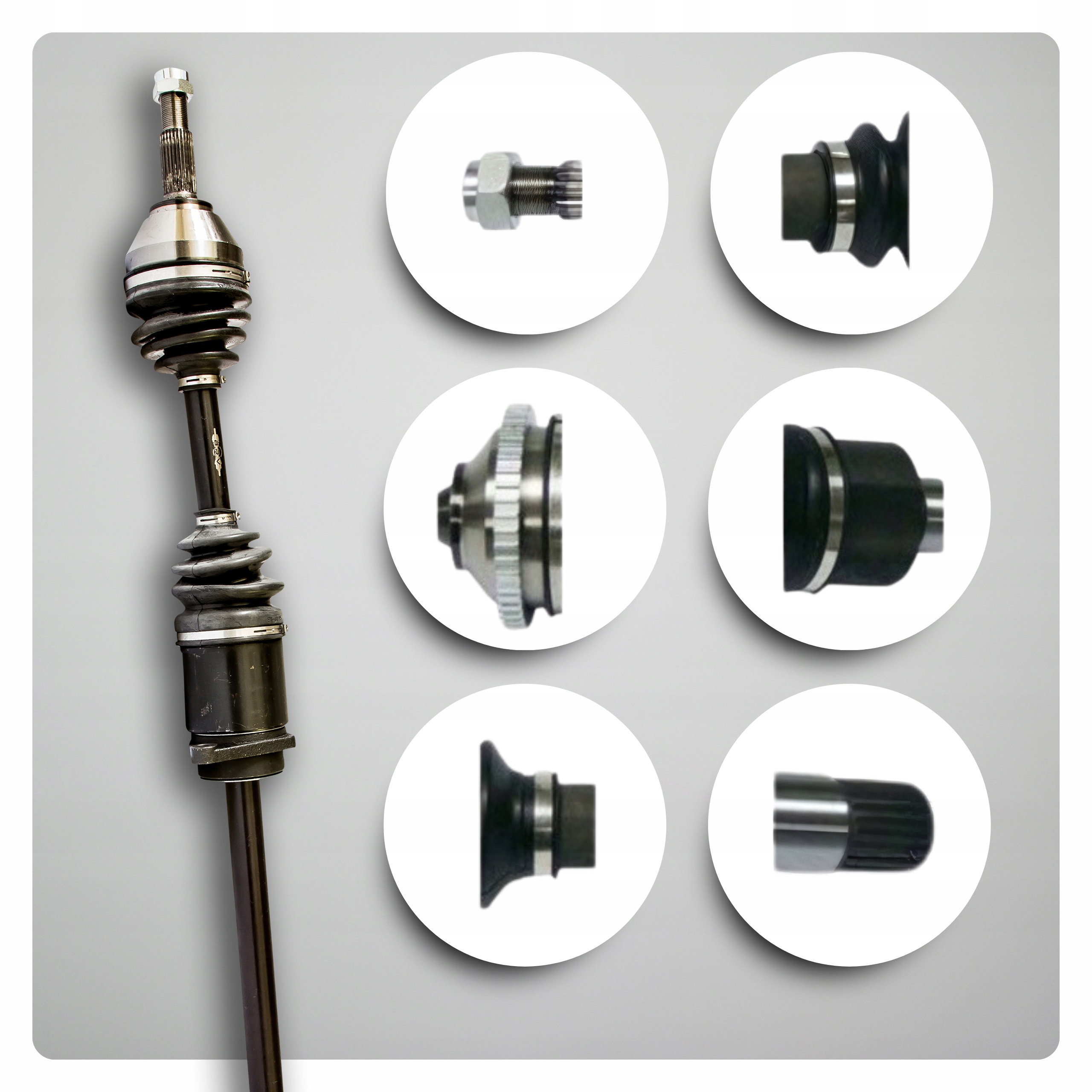 ✅ Wytrzymały wał stalowy z ochroną antykorozyjną, neoprenowe osłony przegubów oraz zintegrowane koronki i pierścienie ABS gwarantują długotrwałą ochronę i stabilność.