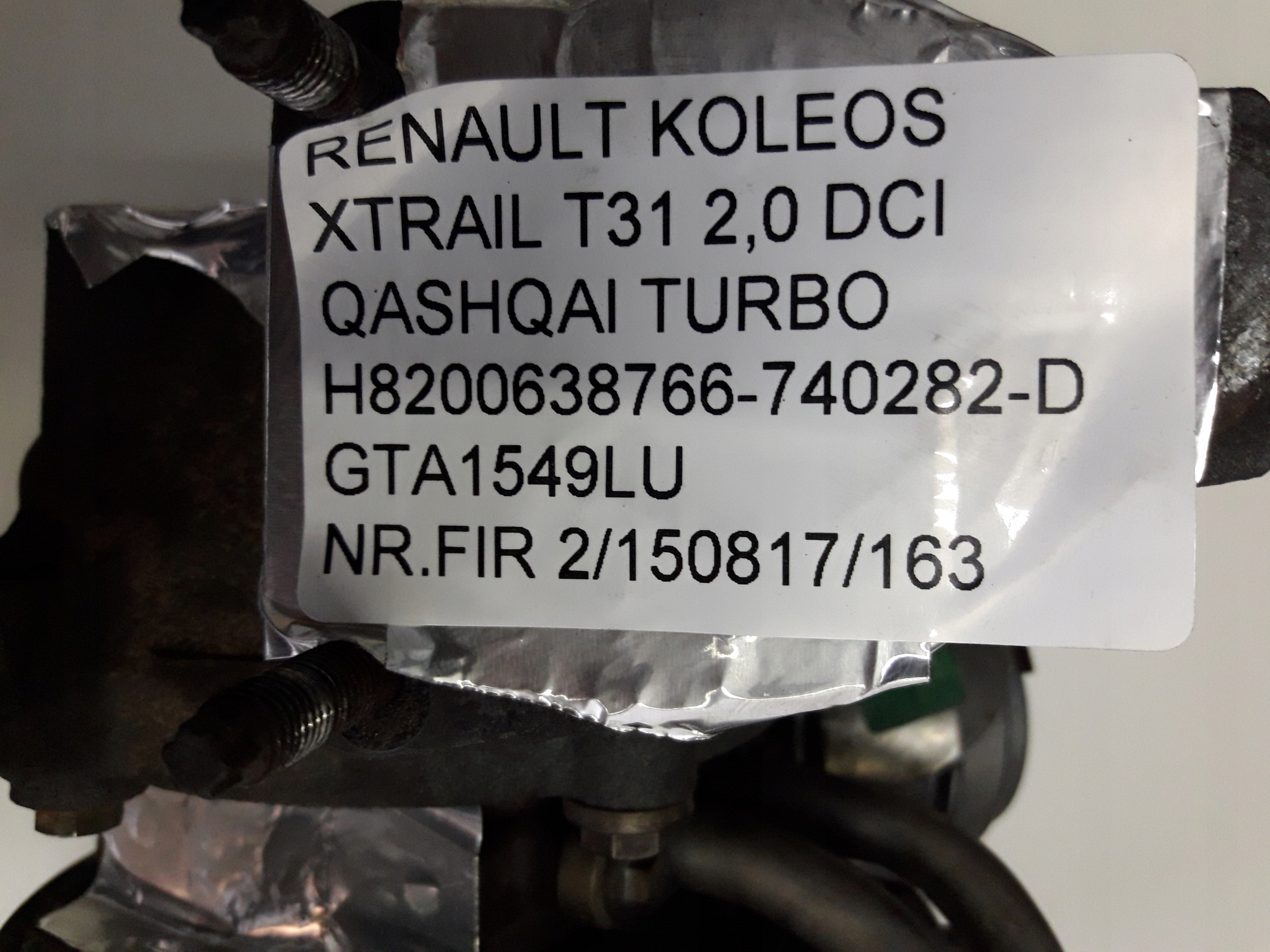 TURBOSPRĘŻARKA DO RENAULT KOLEOS ORAZ NISSAN X-TRAIL T31 MODEL Z SILNIKIEM 2,0 DCI. POCHODZI Z AUTA UŻYTKOWANEGO W FRANCJI I JEST W BARDZO DOBRYM STANIE. CENA BRUTTO. MOŻLIWOŚĆ ODBIORU NA GIEŁDZIE W POZNANIU.