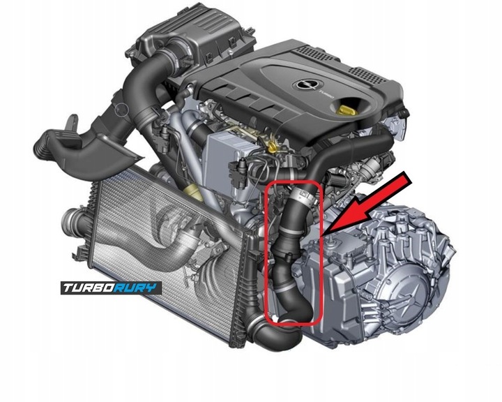 Przewód łączy się między intercoolerem (chłodnica powietrza) a kolektorem ssącym po lewej stronie (strona kierowcy).