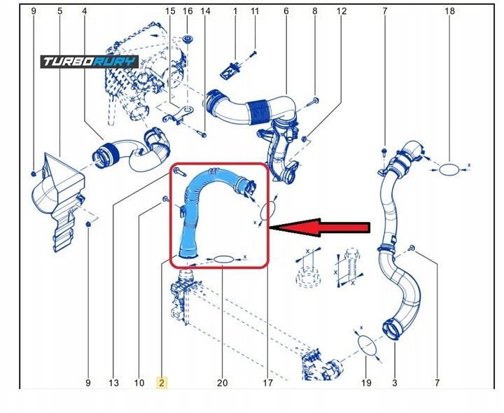 Przewód znajduje się między intercoolerem a przepustnicą.