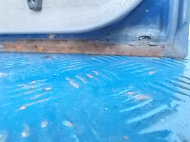 Opis: kpl. granatowe z przyklejonym białym paskiem , z podnośnikiem szyby manualnym i z zamkiem zwykłym , przewiercone w kliku miejscach , z oznakami korozji (T4,2.5TDi,75kW,102KM,Bus) -jakość B && VW TRANSPORTER T4 CAŁE DRZWI PRZEDNIE PRAWE