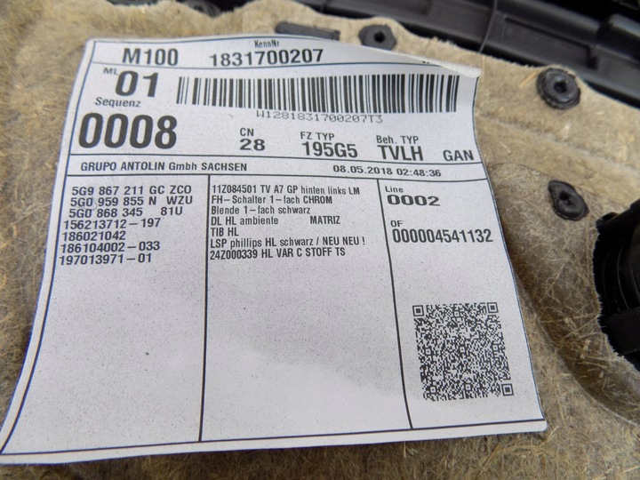 Оригинальный каталожный номер: | 5G4868073 |