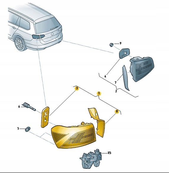 Лампа led vw passat b8 вариант зад левая aso