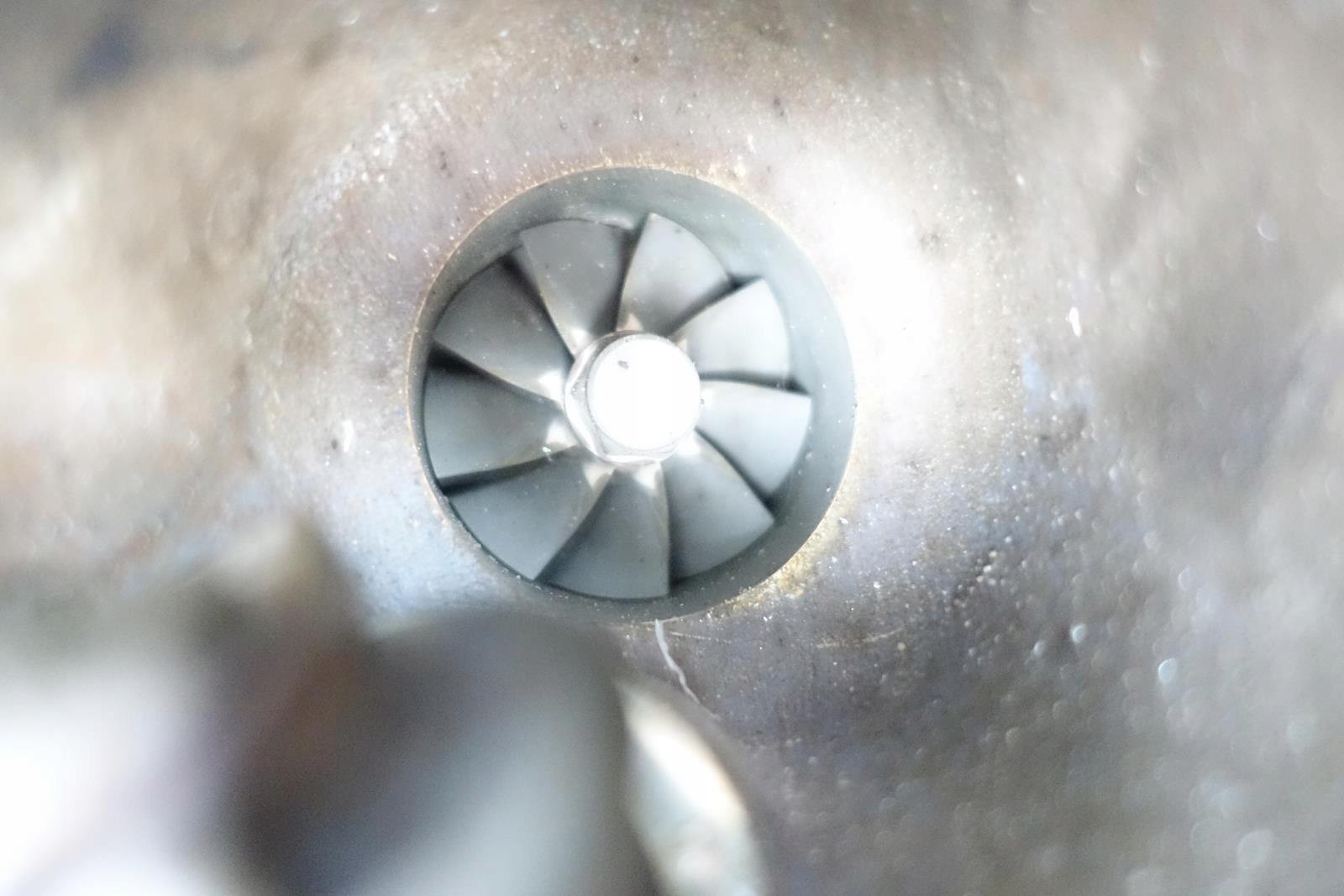 Turbosprężarka posiada lekki luz na boki oraz dwa uszkodzenia widoczne na zdjęciach