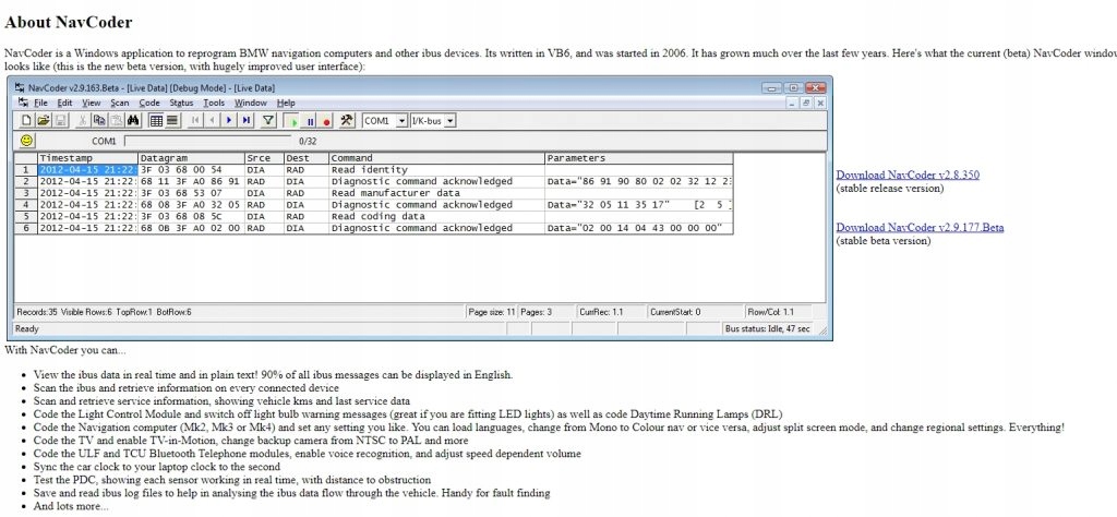 Wybrane możliwości interfejsu IBUS modBM w połączeniu z popularną aplikacją Navcoder: