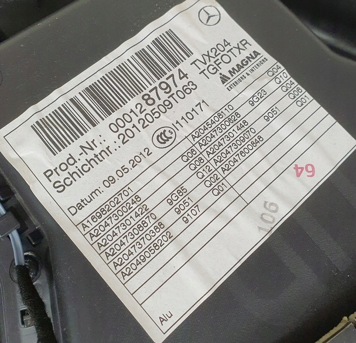 Боковина обивка дверь правые зад mercedes glk x204