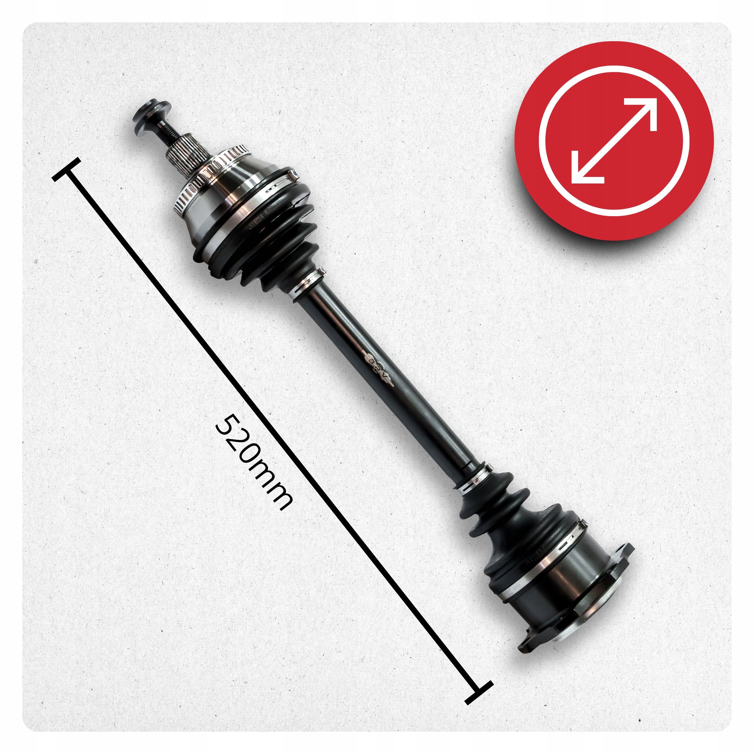 ✅ Wytrzymały wał stalowy z ochroną antykorozyjną, neoprenowe osłony przegubów oraz zintegrowane koronki i pierścienie ABS gwarantują długotrwałą ochronę i stabilność.