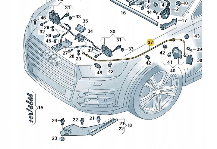 Тяга замка трос открывания капота защёлка передний audi q7 оригинал aso