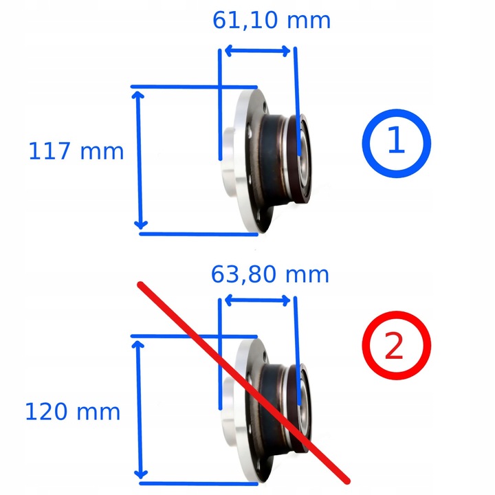 2) Jeśli starta piasta ma średnicę 120 mm i szerokość/grubość 63,80 mm - to PASOWAĆ NIE BĘDZIE