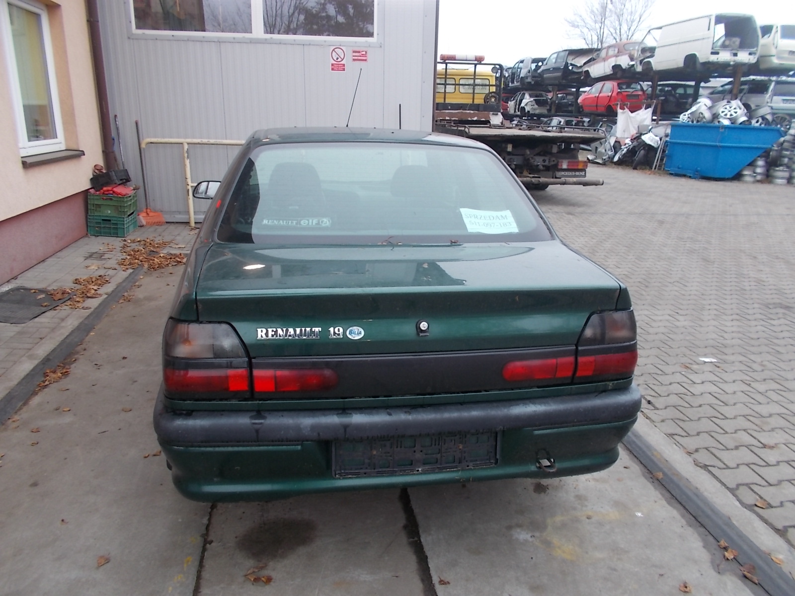 Opis: wersja europejska, zielona, z lampami, zamkiem (II,1.4ie,8V,55kW,75KM,4d sedan,kod koloru 963) -jakość A && RENAULT 19 CHAMADE TYLNA KLAPA 963+ZAMEK+BLENDA