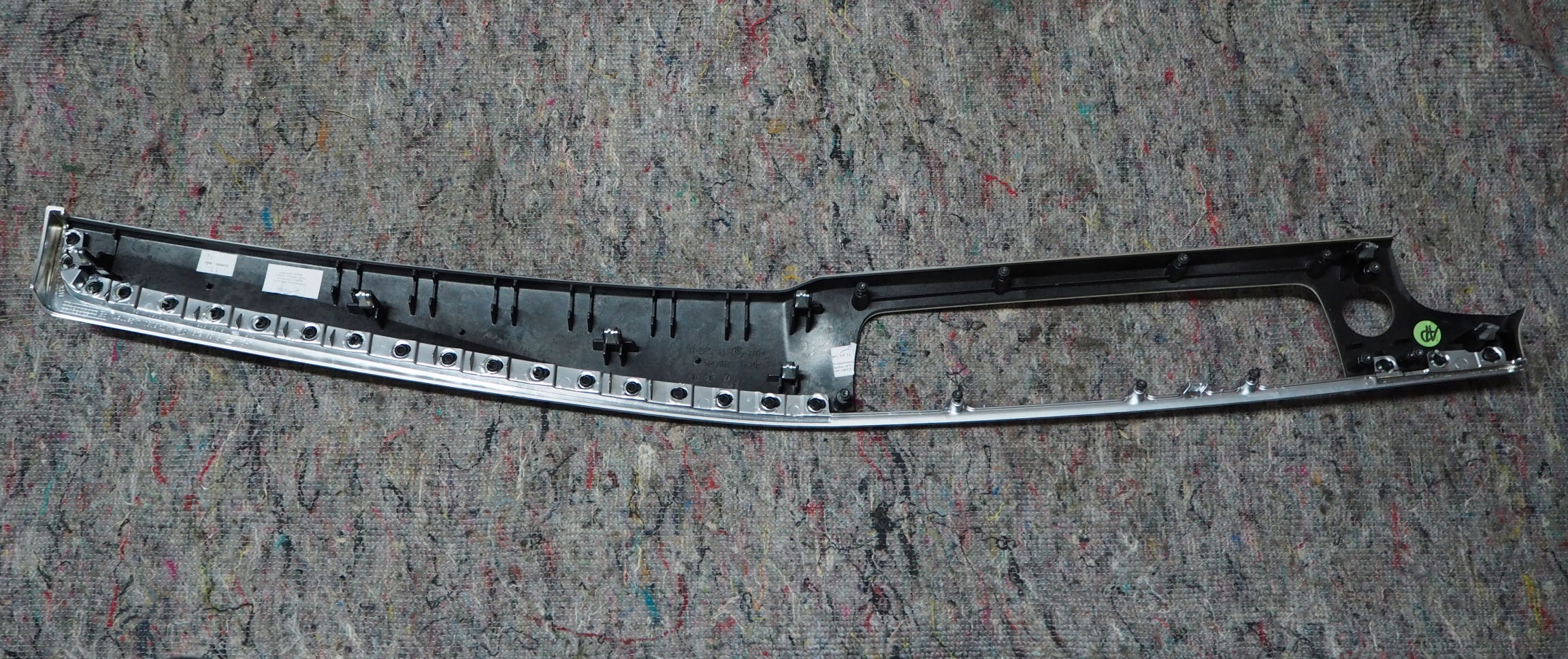 Dekor w dobrym stanie, materiał to szczotkowane aluminium. Wszystkie mocowania kompletne.