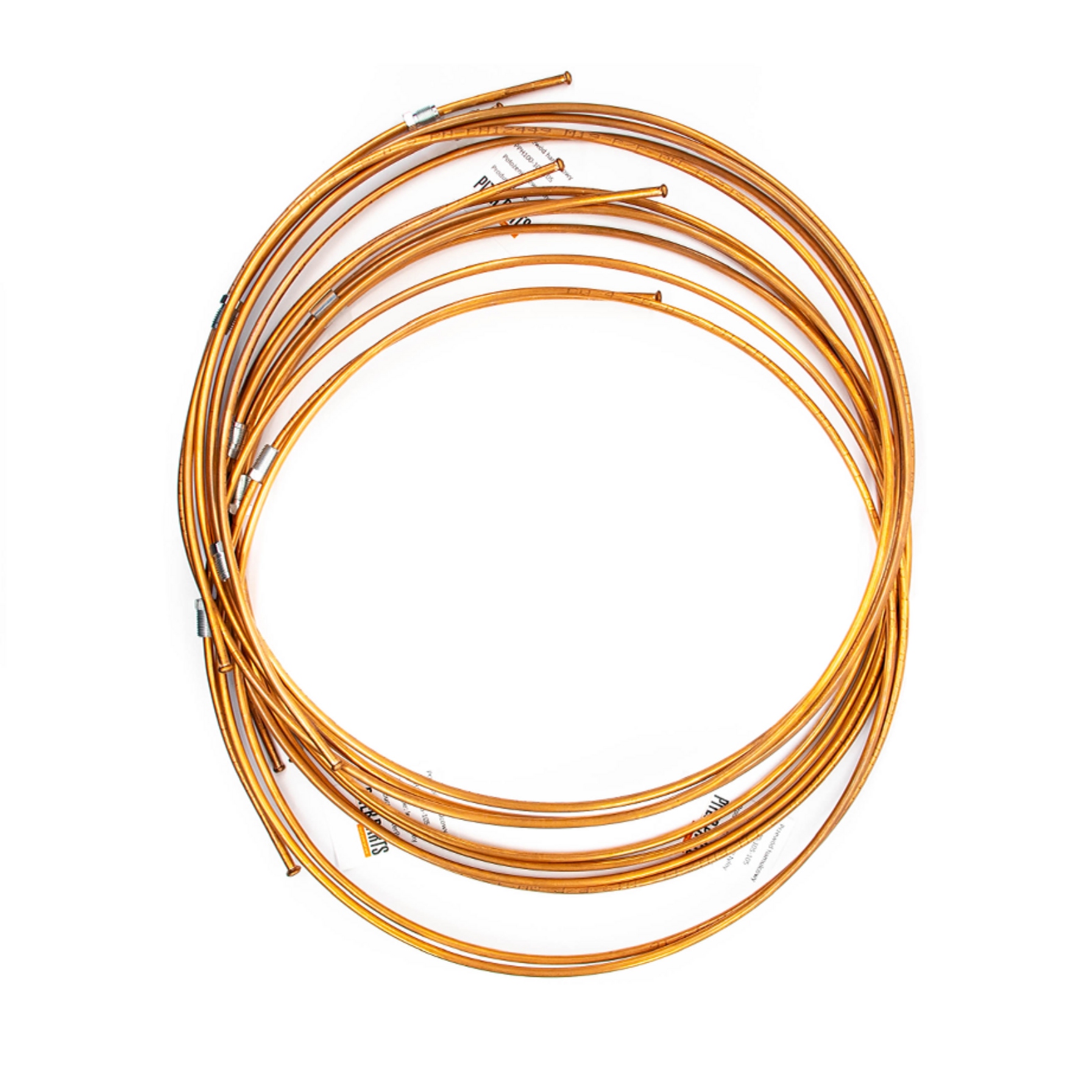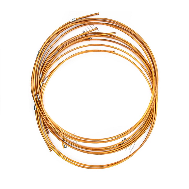 Zestaw zawiera 2 sztuki przewodów sztywnych miedzianych - do przedniego lewego i prawego koła. Przewody zwinięte w kręgi.