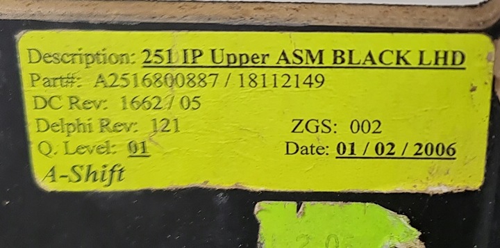 DESKA ROZDZIELCZA KONSOLA PODUSZKA AIRBAG KIEROWCY PASAŻERA PASY ZAPINKI A2516800887