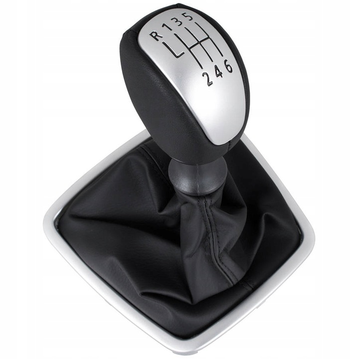nakładka w kolorze SILVER (matowy chrom) i czarnym schematem: 6 biegów + wsteczny