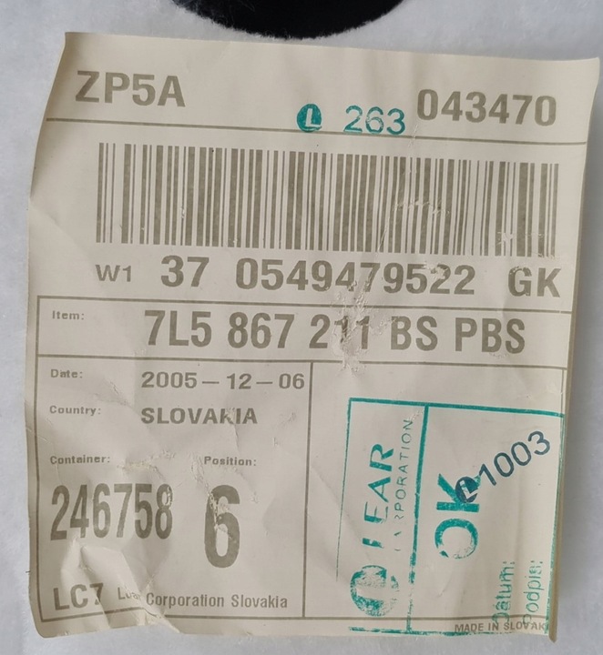 | Якість запчастини відповідно з gvo: | o - оригінал з логотип виробник транспортного засобу оригінальний номер |