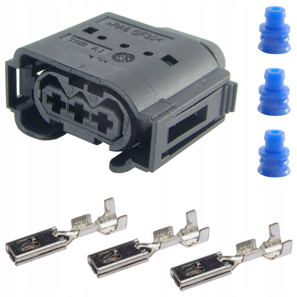 Wtyczka 3-pin, seria 2,8 z konektorami i gumkami uszczelniającymi. Najlepeij pasuje na przewody 0,75-1,0mm2