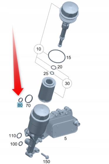 Oryginalny o-ring podstawy filtra oleju stosowany w wielu modelach Mercedes-Benz (i nie tylko) z silnikiem OM651