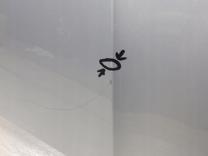 Maska ma niewielkie uszkodzenie nad lampą z prawej strony oraz dwa niewielkie wgniecenia powstałe podczas transportu, co widać na zdjęciu.