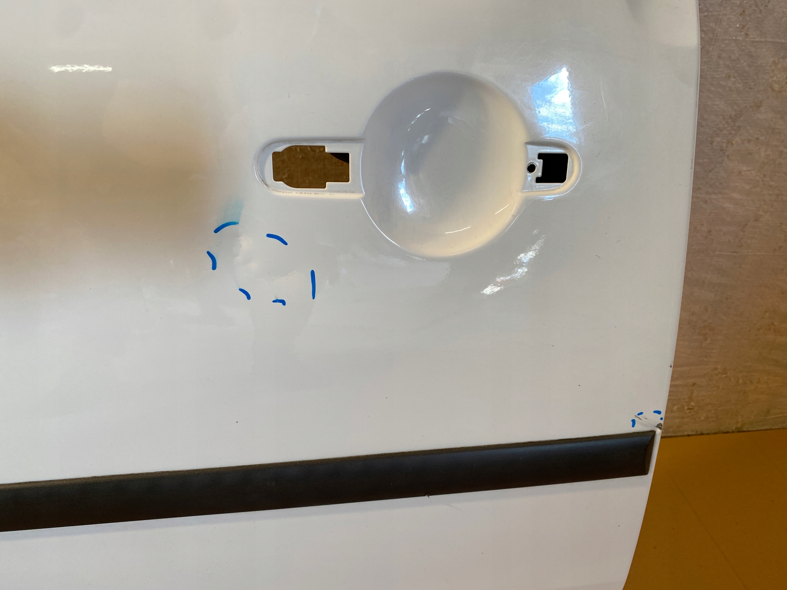 Drzwi ładne, uszkodzone w miejscach zaznaczonych na zdjęciach. Wymagają ponownego lakierowania.