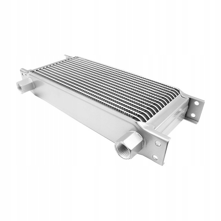 Aluminiowa, wysokowydajna chłodnica oleju. Solidnie wykonana, dzięki czemu wytrzymuje wysokie ciśnienia, a odpowiednia gęstość żeberek radiatora zapewnia skuteczne chłodzenie nawet w ekstremalnych warunkach torowych, z powodzeniem stosowana w wyścigach samochodowych, drifcie. Testowane do 10 barów.