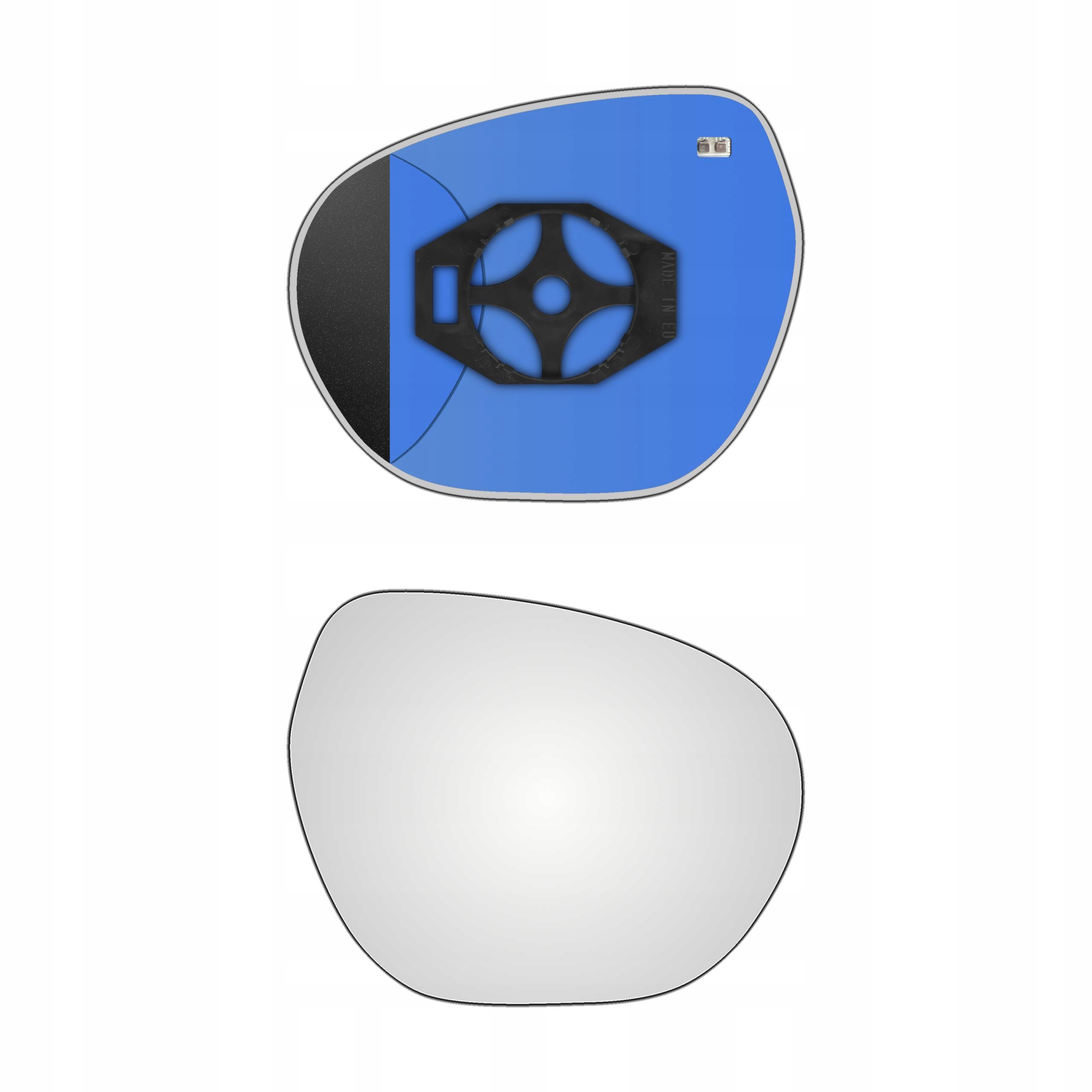 Prawy ogrzewany wkład sferyczny lusterka - z plastikiem montażowym typu E0 (tzw. EURO) i oddalającym (bezbarwnym) szkłem z grzałką