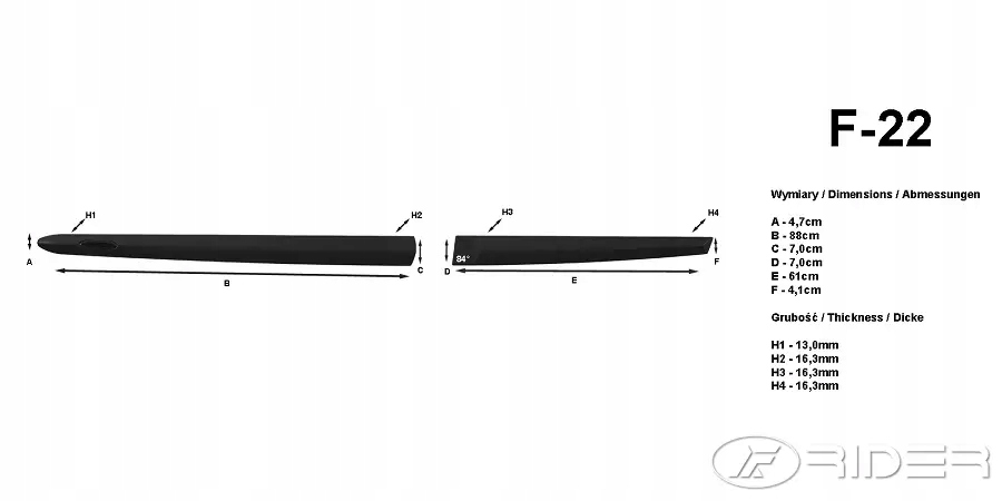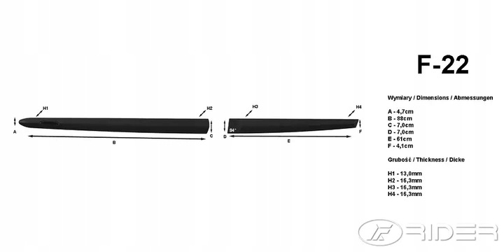 Samochodowe listwy boczne RIDER bardzo dobrze zabezpieczają drzwi samochodu oraz ich przetłoczenia przed obiciami i zarysowaniami mogącymi powstać podczas parkowania w ciasnych przestrzeniach. Listwy montowane są bez ingerencji w nadwozie samochodu. Montaż odbywa się za pomocą taśmy samoprzylepnej 3M fabrycznie zaaplikowanej na powierzchnię listew.