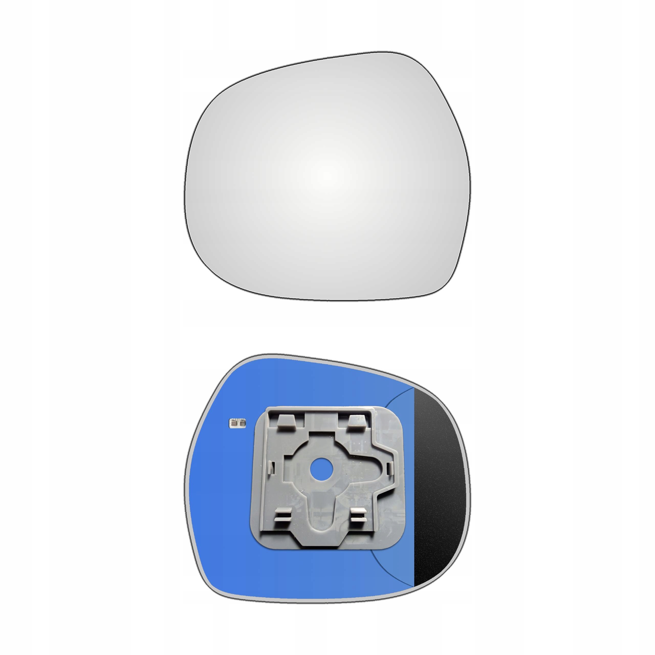 Lewy ogrzewany wkład sferyczny lusterka - z plastikiem montażowym typu E51 i oddalającym (bezbarwnym) szkłem z grzałką