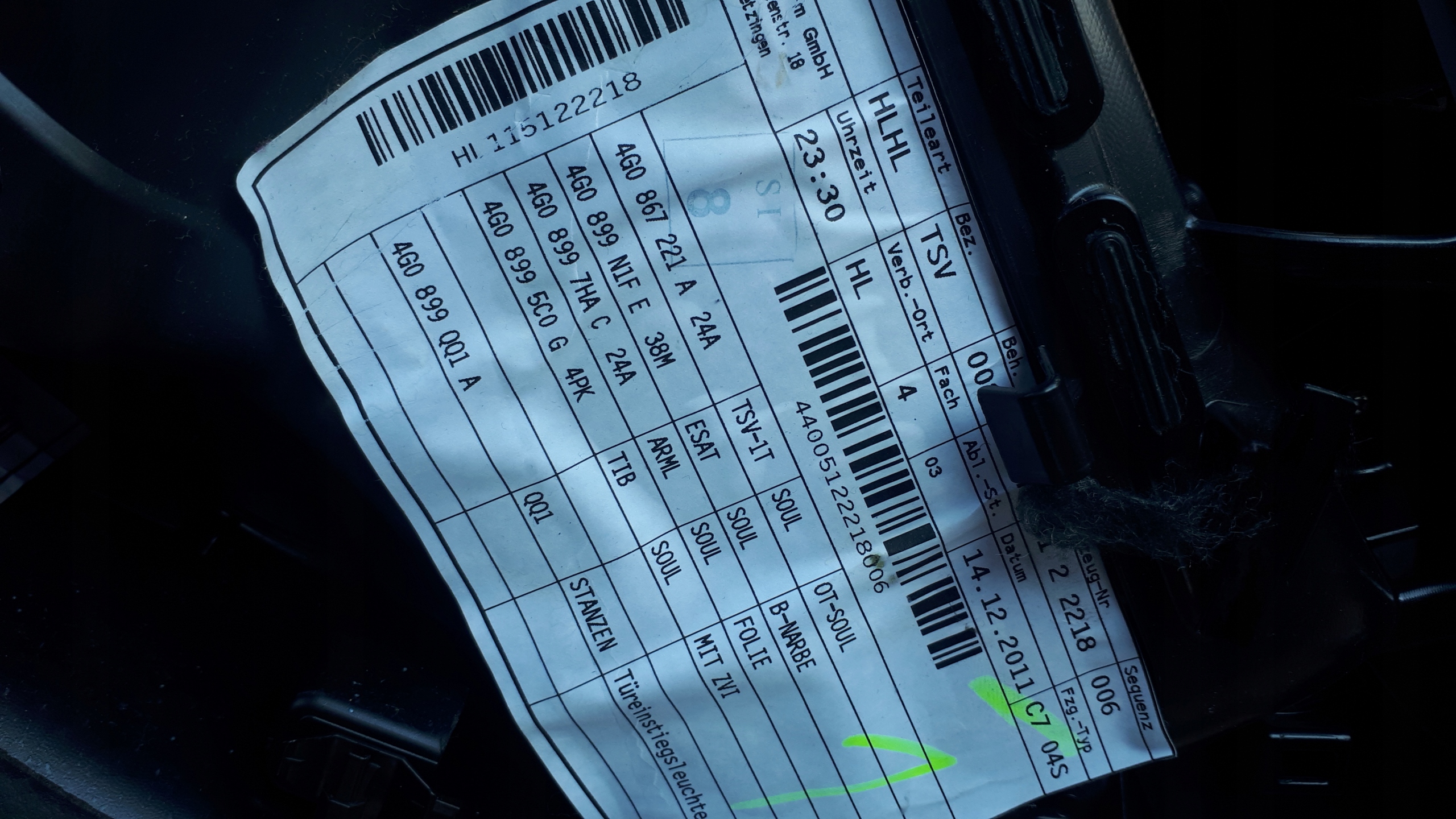 Боковина двері audi оригінальний номер 4g0867221a