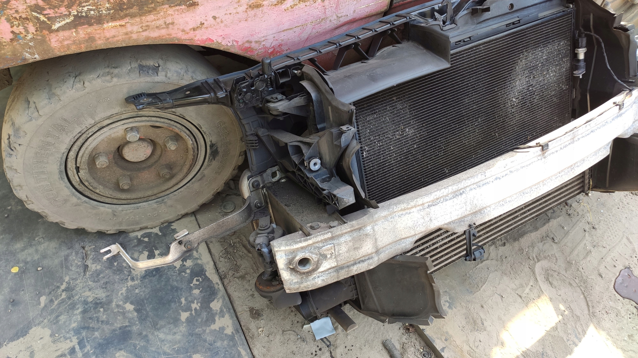 Kompletny pas przedni z chłodnicami, belką, odbojami, wentylatorami pochodzący z AUDI A6 C7 z 2012 roku z silnikiem 2.0 TDI i manualną skrzynią biegów.