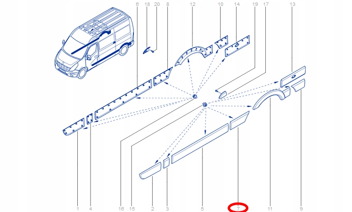 Nowa oryginalna Renault - Nissan listwa błotnika lewego tylnego w komplecie z spinkami. (przed tylnym kołem).