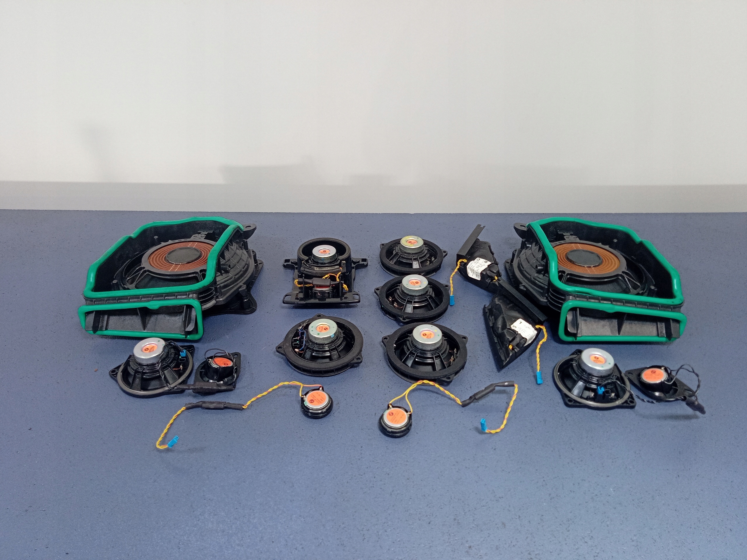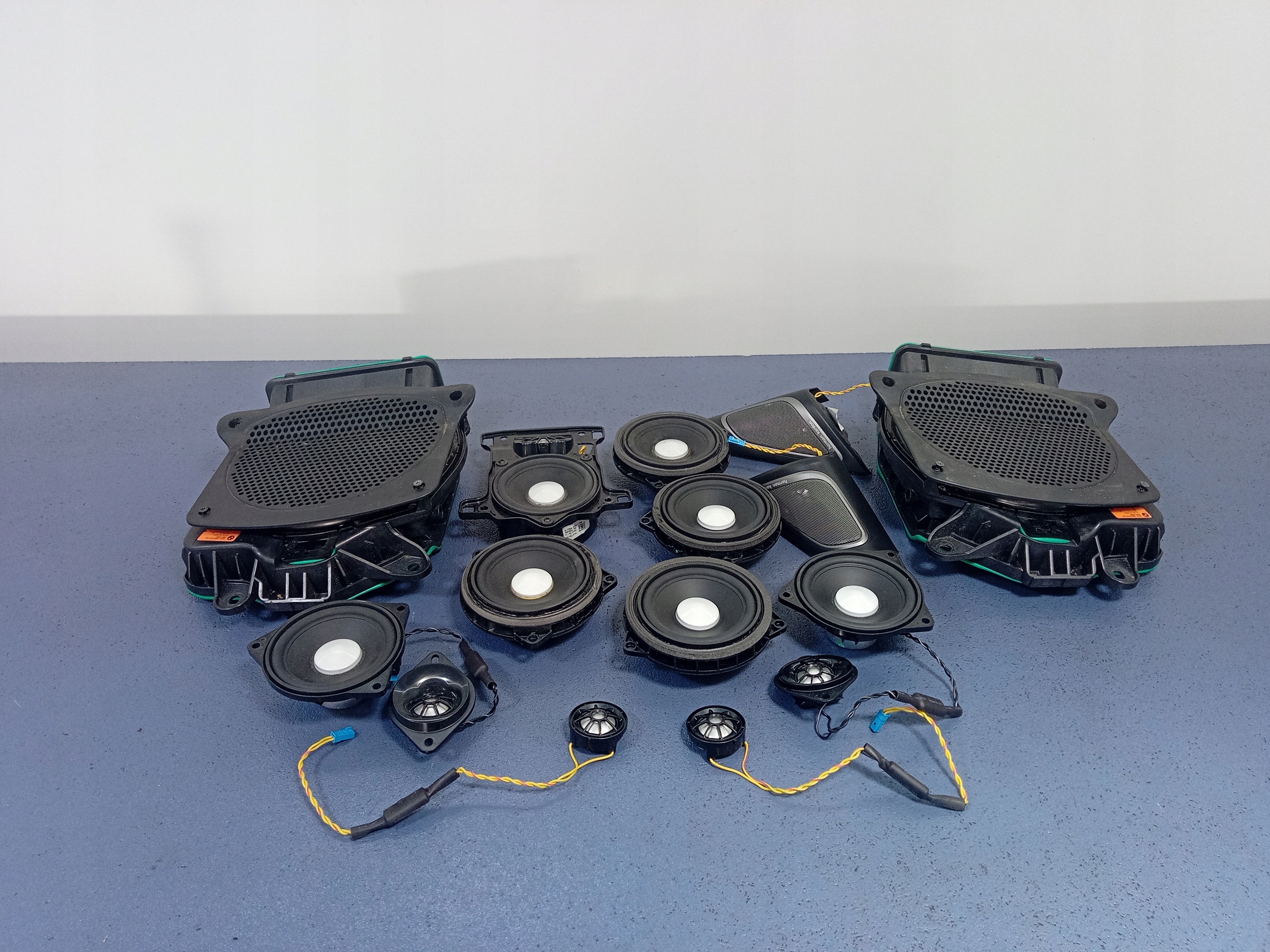 Opis: komplet nagłośnienia Harman Kardon, wzmacniacz 9393187, 4 głośniki średniotonowe 9364956,9368383, 2 głośniki półki tylnej 9368383 z gwizdkami 9226358, 2 gwizdki 9184794, 2 trójkąty z gwizdkami 7458448,7458447, głośnik konsoli z gwizdkiem 9368383,9184794, 2 subwoofery 6801075,6801076. -jakość A && BMW 7 G11 G12 NAGŁOŚNIENIE HARMAN KARDON KOMPLET