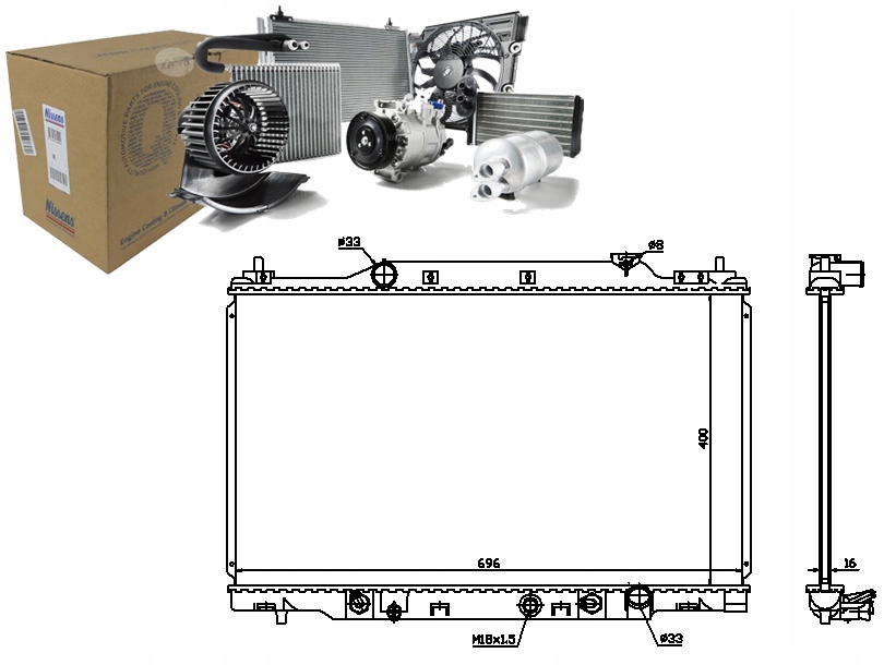 - Wymiary radiatora: 400 X 698 X 16 mm