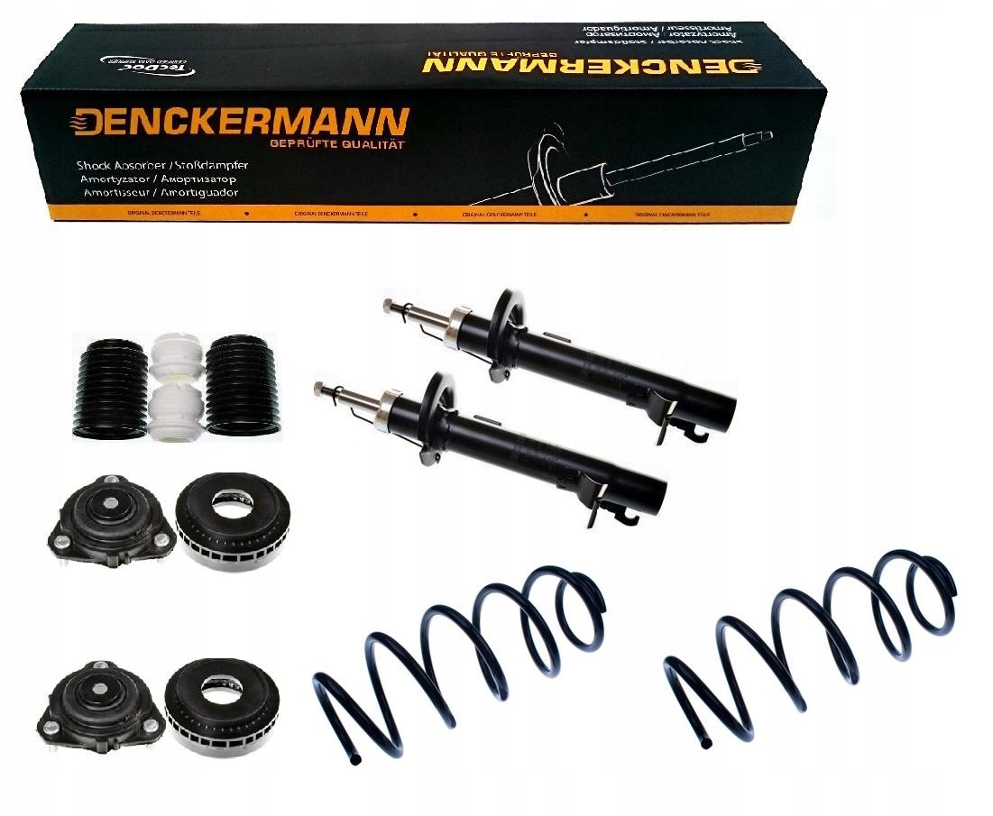 KOMPLET AMORTYZATORÓW GAZOWYCH RAZEM Z OSŁONAMI I ODBOJAMI NA PRZÓD FIRMY DENCKERMANN i GÓRNE MOCOWANIA Z ŁOŻYSKAMI ORAZ SPRĘŻYNY NA PRZÓD