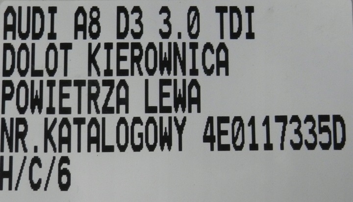 | Каталожний номер запчастини: | 4E0117335D, KIEROWNICA, POWIETRZA, LEWA, A8, D3 |