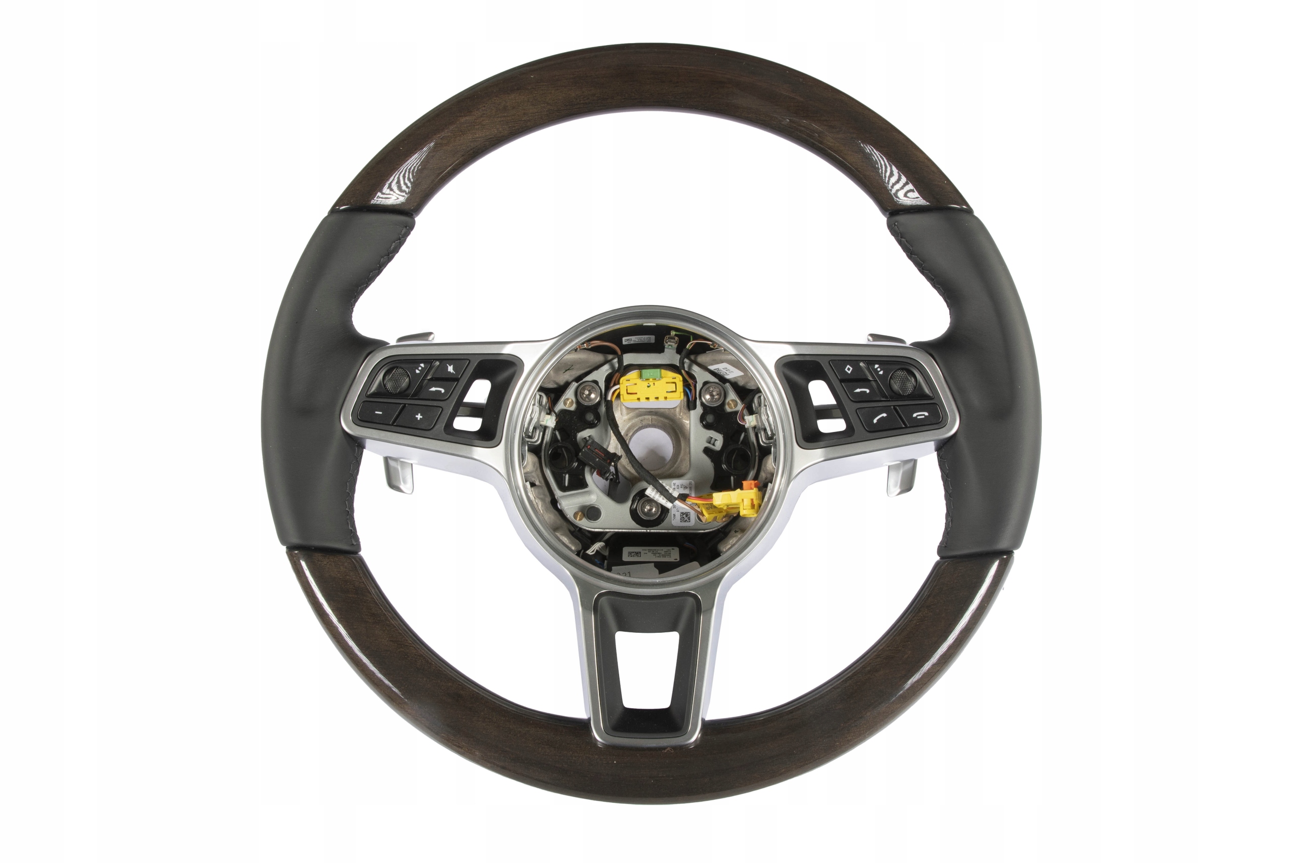 Porsche Panamera G2/971 Kierownica wielofunkcyjna, Trójramienna, Podgrzewana, Skóra / Drewno, Czarna.