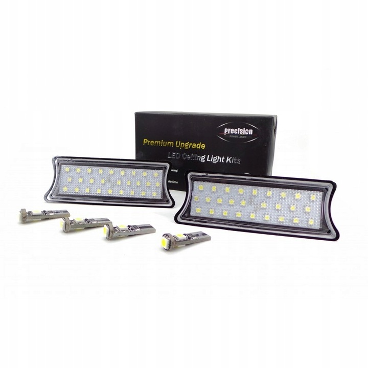 Moduł podświetlenia wnętrza. Wysokiej klasy zamiennik LEDowy, dedykowany pod auta BMW. Współpracuje z samochodami wyposażonymi w instalację CAN - nie generuje błędu spalonej żarówki. 1 komplet (2 lampki i 4 x W5W)