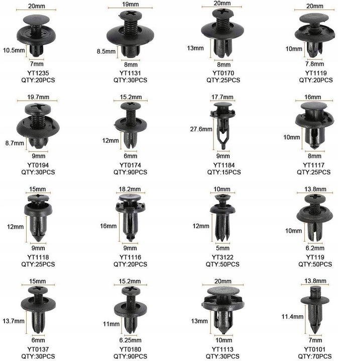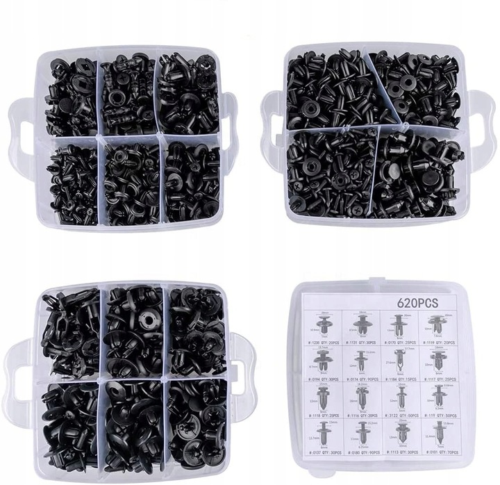 | Каталожний номер запчастини: | ZESTAW SPINKI KOŁKI SAMOCHODOWE ROZPOROWE 620szt. |