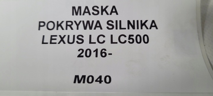 MASKA POKRYWA SILNIKA LEXUS LC LC500 2016-