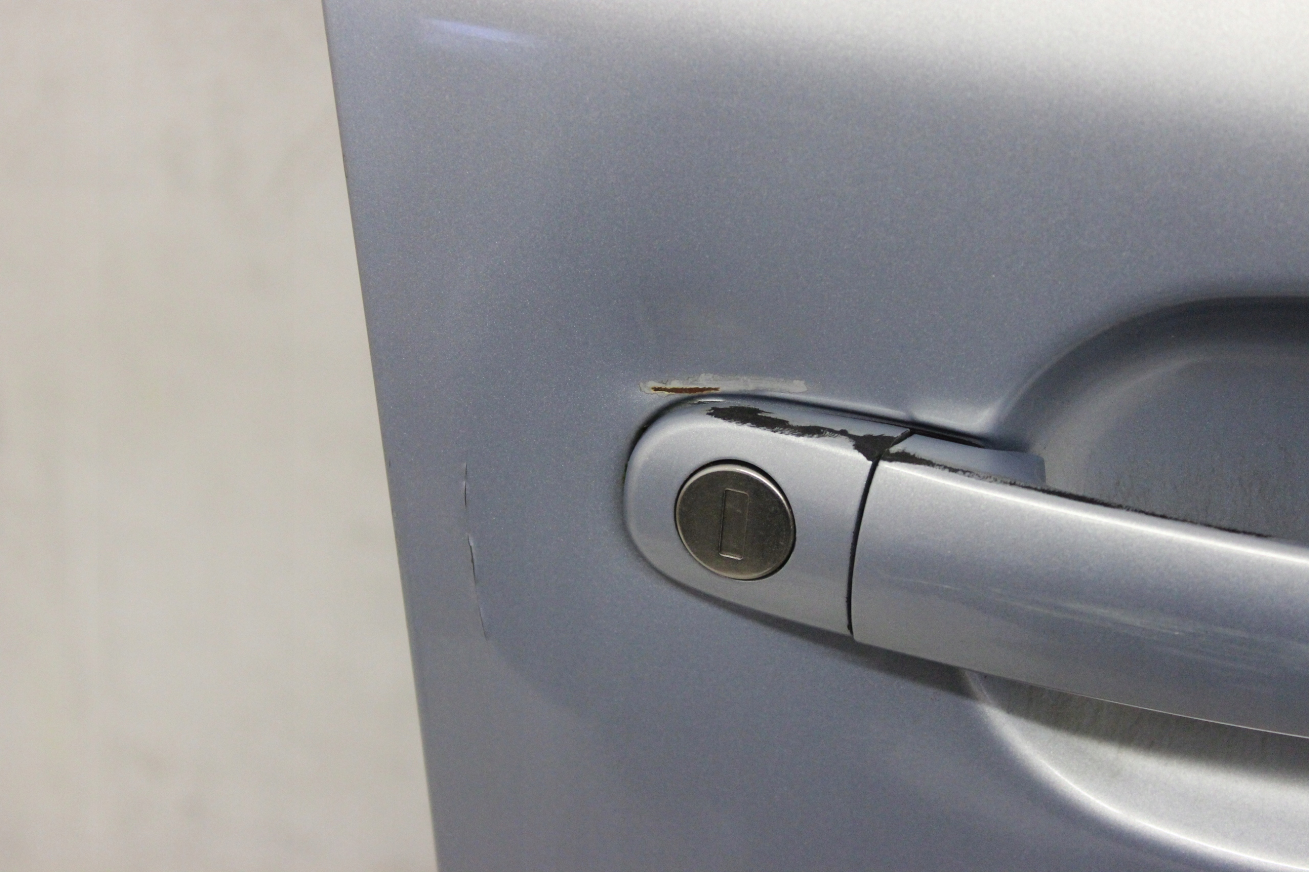 Stan wizualny widoczny na zdjęciach, uszkodzenia widoczne na zbliżeniach, wgniecenie w miejscu klamki oraz pęknięty lakier - zdjęcia nr 2-5.