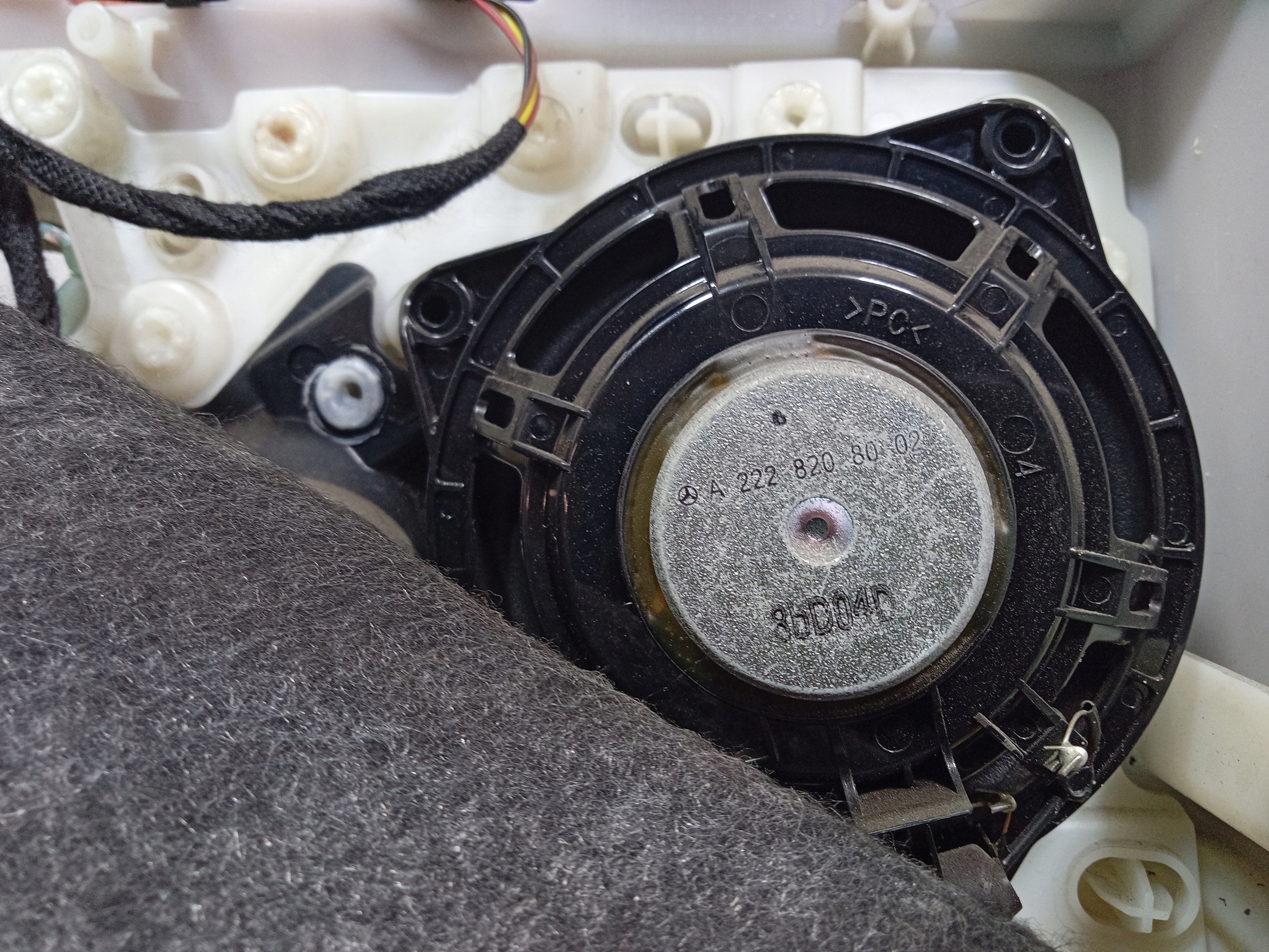Opis: strona zabudowy prawa tylna, głośnik Burmester, tapicerka, Tapicerka ze skóry Nappa AMG, kolor kolor porcelany/czerń , uszkodzenia okopcenia widoczne na zdjęciach -jakość B && MERCEDES S W222 TAPICERKA DRZWI TYŁ PRAWA LONG