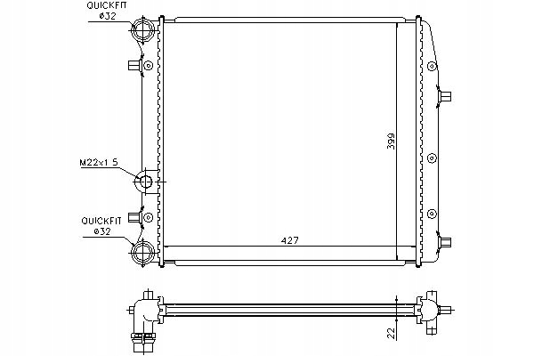 - Wymiary radiatora: 430 X 406 X 22 mm