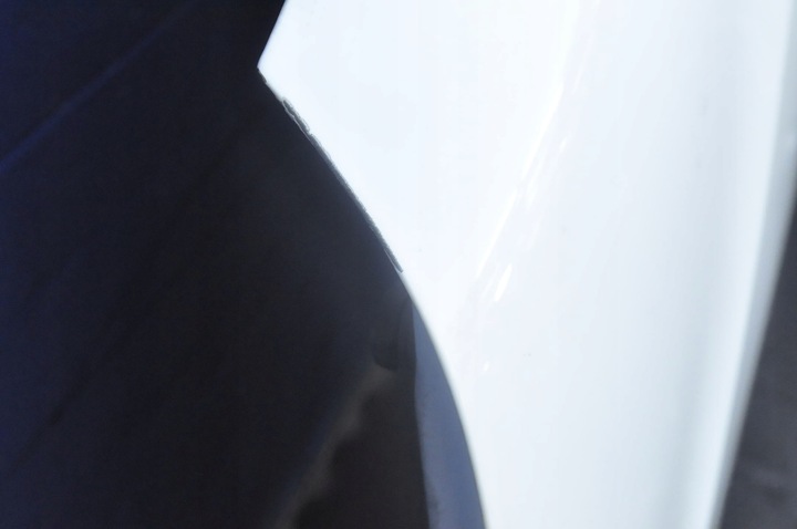 MASKA JEST SZPACHLOWANA, ŚLADY PO KLEJU, RYSY, PĘKNIĘCIE LAKIERU, MAŁE WYPUKLENIE.