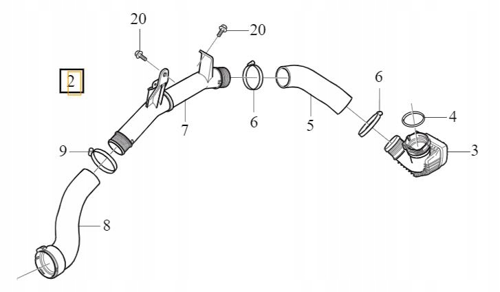 prawa rura, prawy przewód, dolot powietrza (część nr 2 na grafie: 3+4+5+6+7+8+9), 32325567 OE, nowy, oryginalny