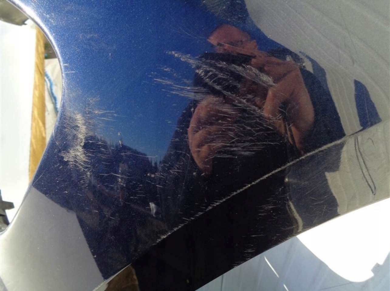 Zderzak do poprawek lakierniczych, posiada drobne ryski, odpryski i małe przytarcia. Stan jak na zdjęciach - goła nakładka.